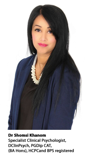Dr Shomsi Khanom is a Charted Clinical Psychologist with a wide breadth of experience spanning over ten years of working in the NHS with patients presenting with a range